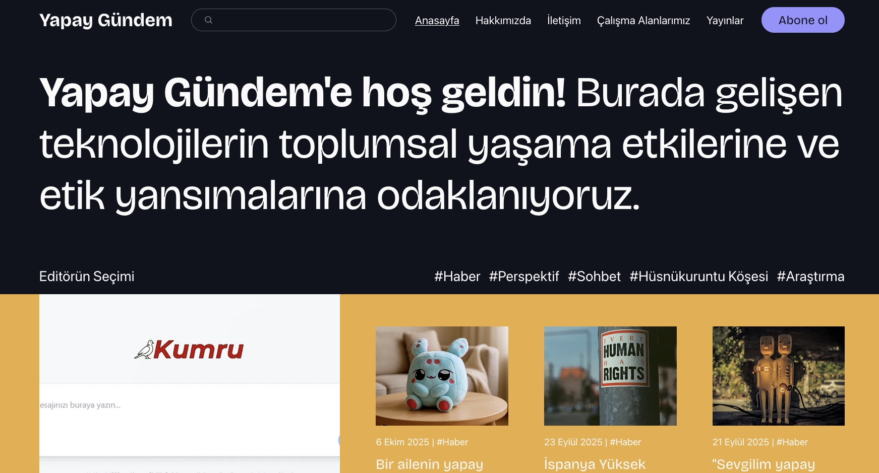 An ongoing publication and research initiative that monitors developments in artificial intelligence through the lenses of democracy and ethics, addressing the lack of Turkish-language resources. The platform produces content and delivers trainings for media professionals and civil society organizations, focusing on AI-driven disinformation and platform power.